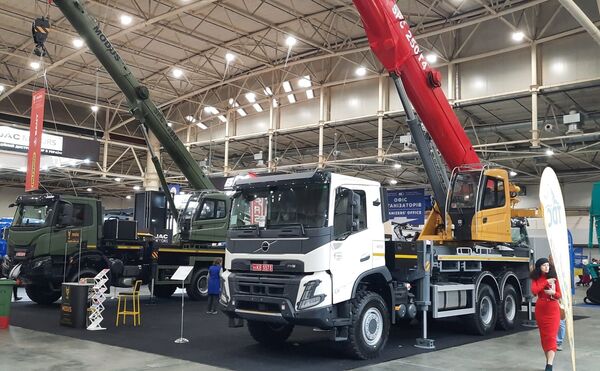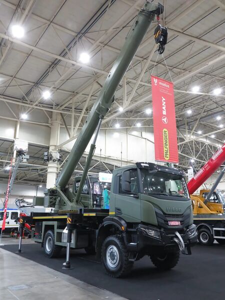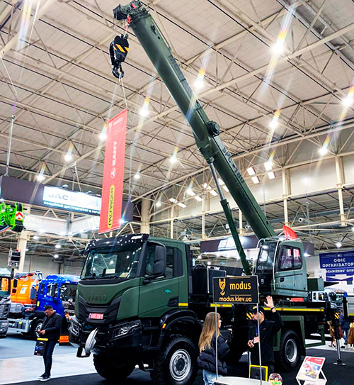 На виставці ДорТехЕкспо-2024 Український Машинобудівний Завод «МОДУС» демонструє автокрани SANY з вантажопідйомністю 18 та 25 тонн на базі шасі IVECO та VOLVO, а також крано-маніпуляторні установки FASSI (Італія) на базі бортових вантажних авто IVECO.