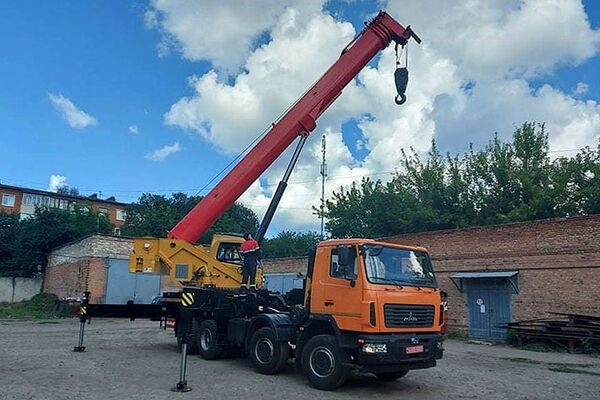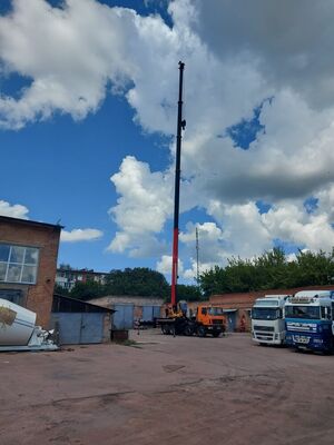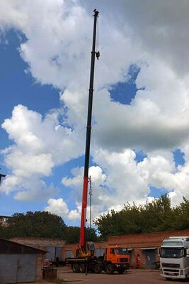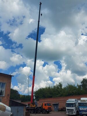 Автомобільний кран, що має 5 секції, в/п 50 т. Вантажний момент 142 тм, довжина стріли 10,5–40,5 м, гусьок 9 м, максимальний підйом і виліт 39 м та 34 м відповідно.