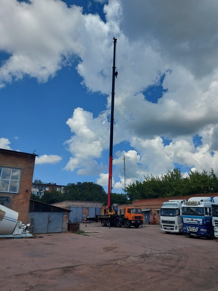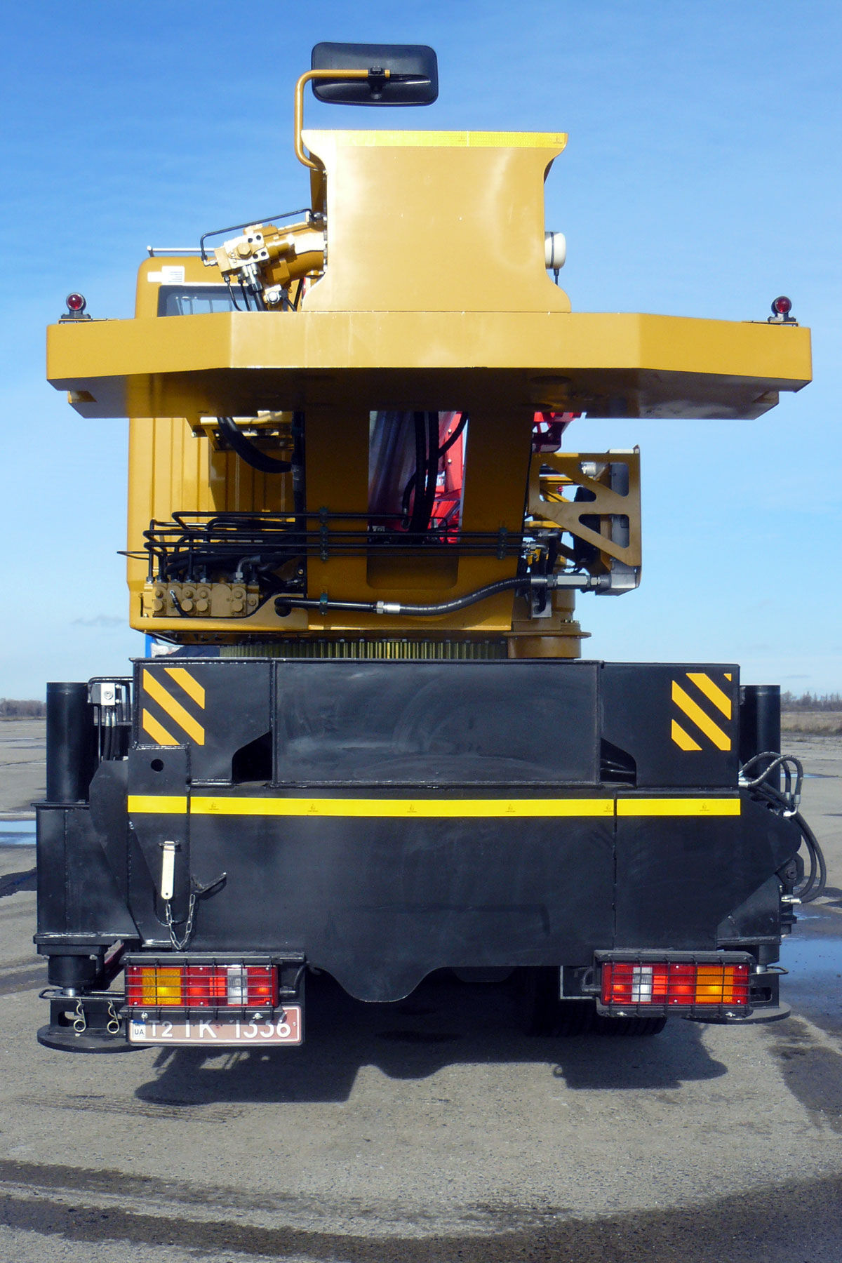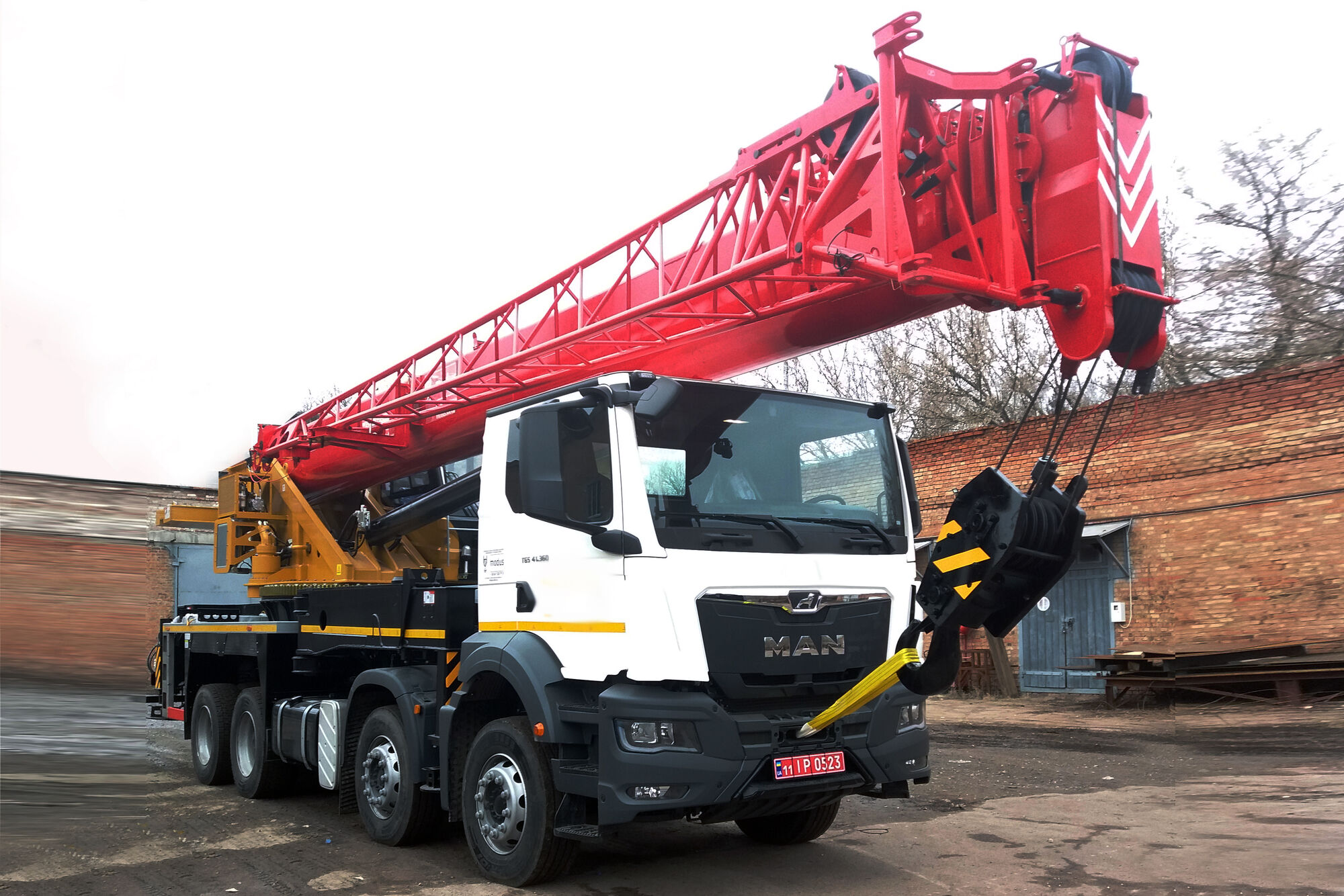 Автомобільний кран, що має 5 секції, в/п 50 т. Вантажний момент 142 тм, довжина стріли 10,5–40,5 м, гусьок 9 м, максимальний підйом і виліт 39 м та 34 м відповідно.