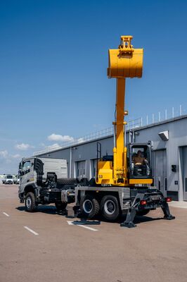 Цікаво, що в транспортному положенні екскаватор має наднизькі габарити і може використовуватись в зоні з щільної забудови. Даний екскаватор може бути з телескопічною стрілою та мікроходом.