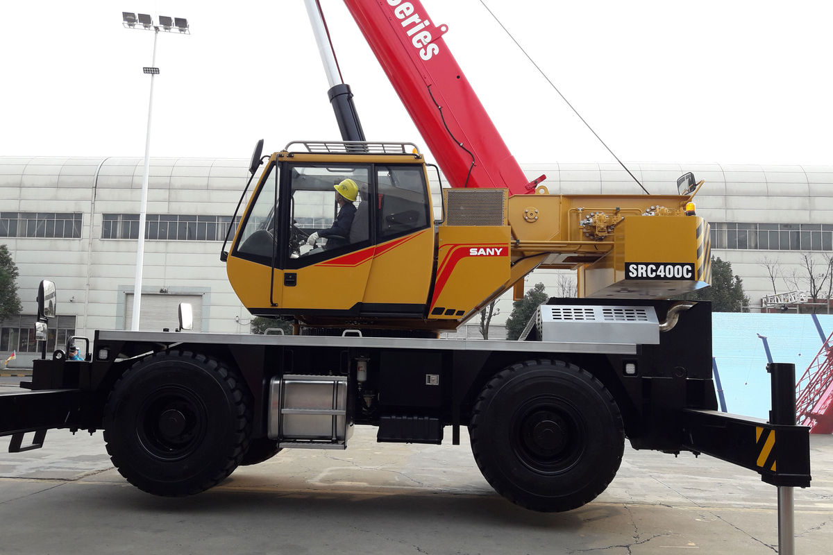 Короткобазний кран Palfinger Sany SRC 400 C, що має 4 секції, в/п 40 т. Самохідне шасі 4×4.