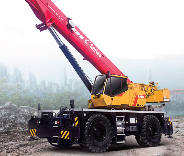 Короткобазний кран Palfinger Sany SRC 900 C, що має 5 секцій, в/п 90 т. Самохідне шасі 4×4.