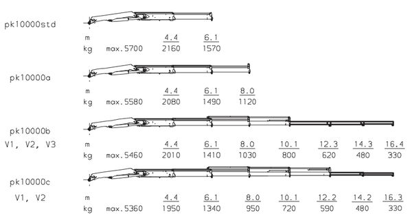 Характеристики модифікацій на кран-маніпулятор Palfinger PK 10000 Performance