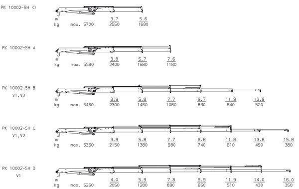 PK 10002 SH C V1, V2 | 8,5 тм | 15,8 м | 5360 кг | 380 кг | 400 º | 1370 кг | Дізнатись ціну |