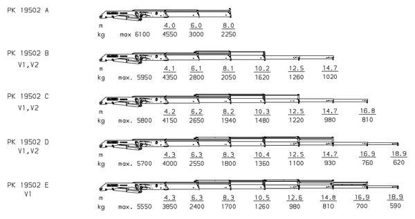 Характеристики модифікацій на кран-маніпулятор Palfinger PK 19502 High Performance