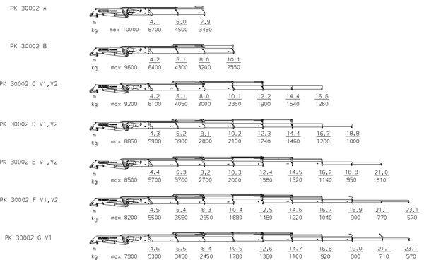 PK 30002 C V1, V2 | 25,9 тм | 16,6 м | 9200 кг | 1260 кг | 400 º | 3291 кг | Дізнатись ціну |