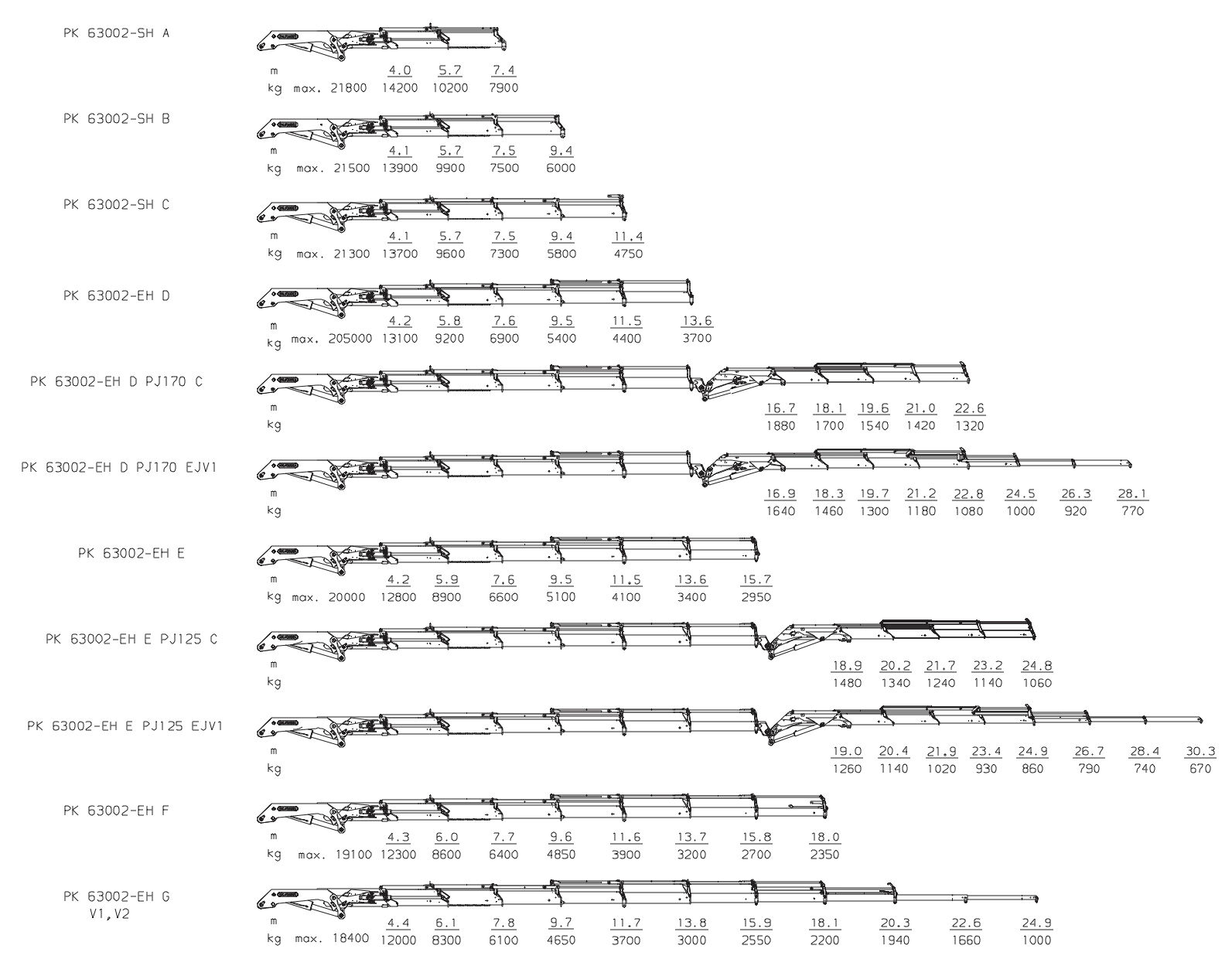 Характеристики модифікацій на кран-маніпулятор Palfinger PK 63002 EH High Performance
