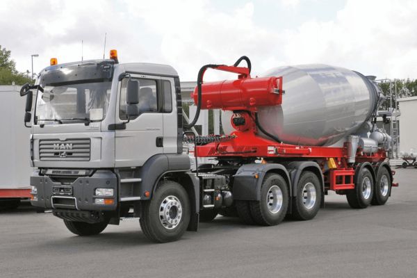 ** Вимірюється відповідно до DIN 459-1 при хв. двох оборотах барабана в хвилину. Зазначені значення обсягу відповідають тільки при горизонтально рівною рамі змішувача. Тут не враховується прогин рами змішувача під час завантаження і він може при певних обставинах несприятливо впливати на обсяг, вимірюваний наповненням водою. Реальна заповнюваність змішувача бетоном залежить від його консистенції і реологічних властивостей. Топологія проїжджої частини, а також якість їзди впливають на максимальний обсяг завантаження.
