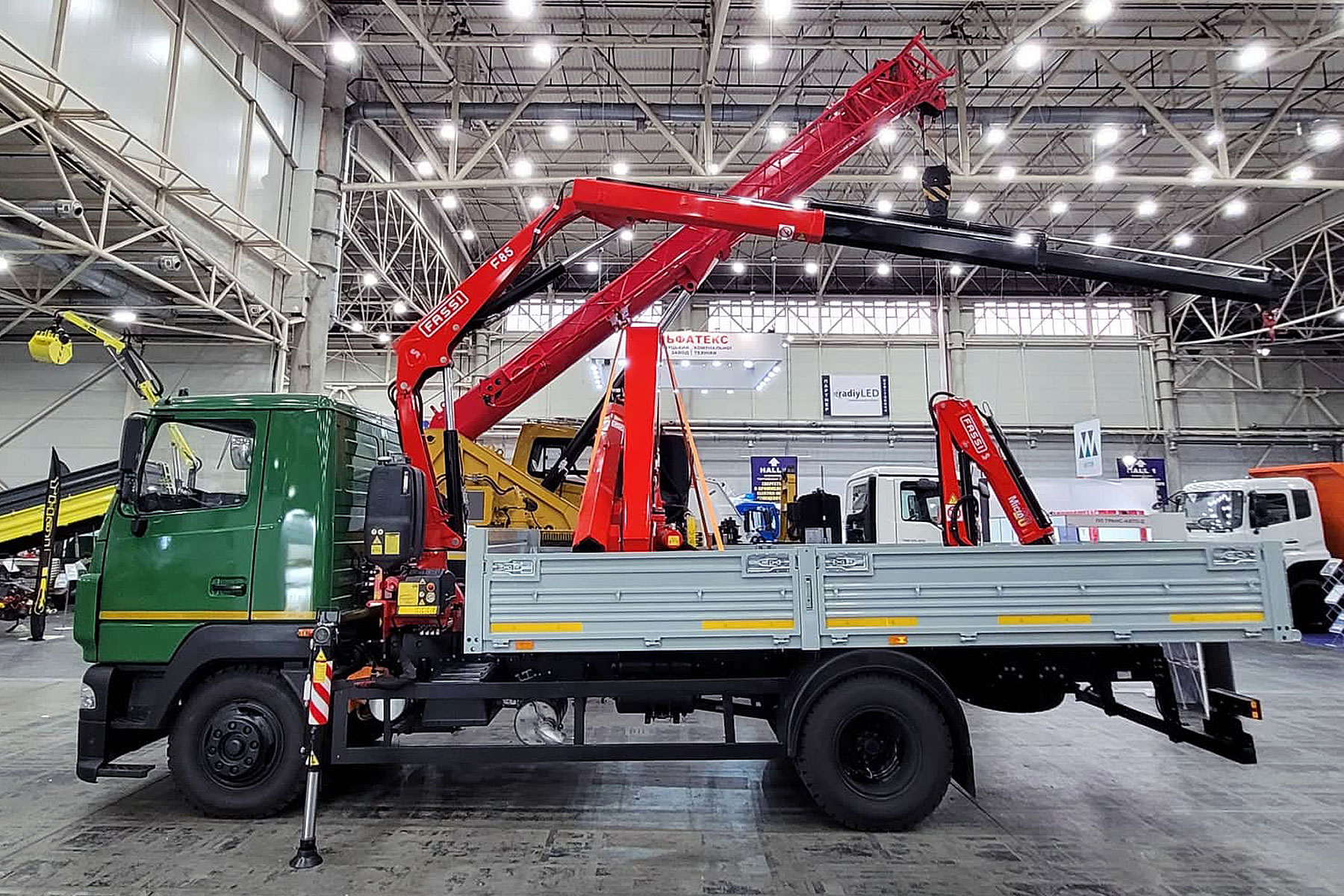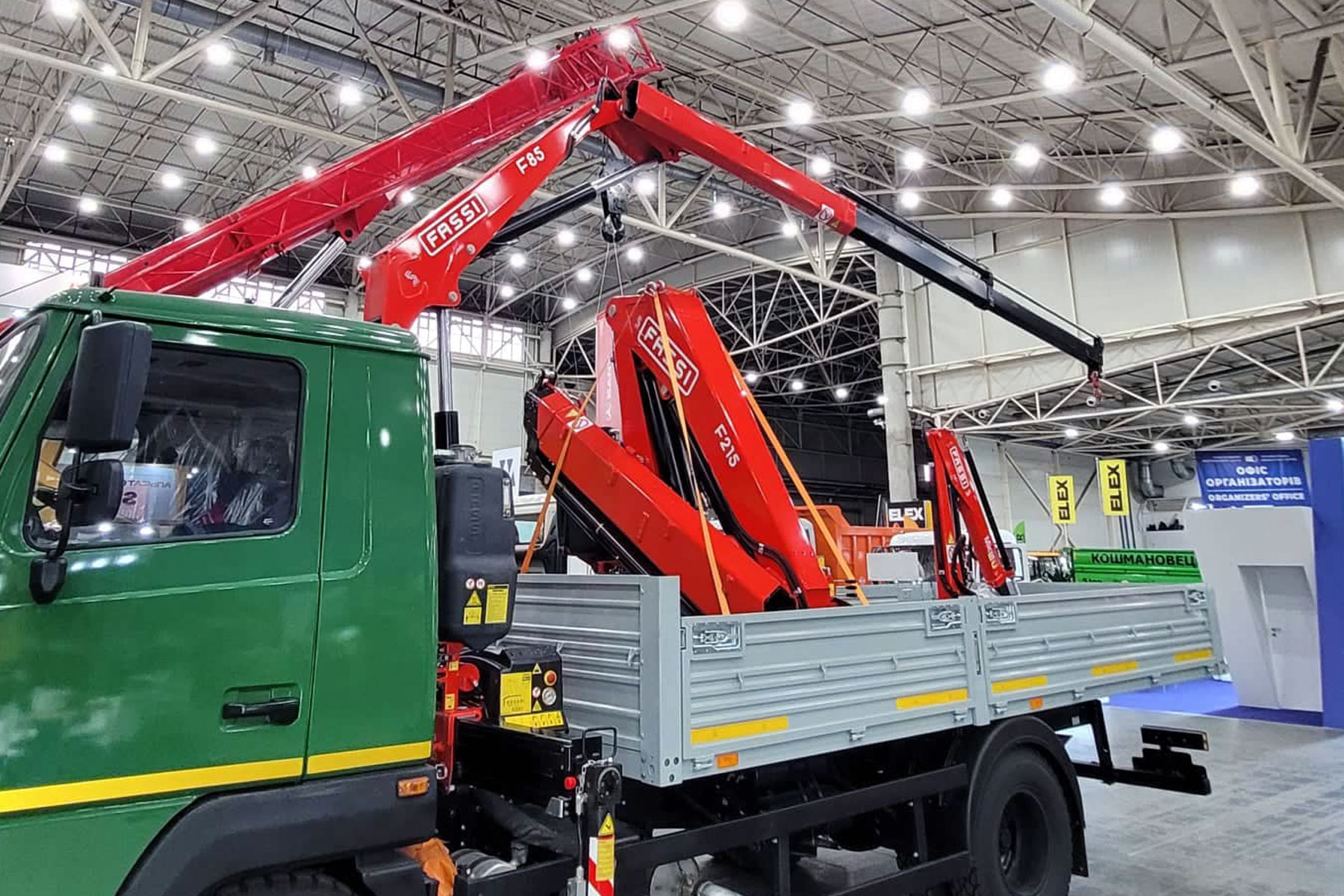 - Модельный ряд крано-манипуляторных установок итальянского происхождения от TM FASSI. В частности, один из кранов-манипуляторов (модель FASSI F85 B.0.22 — грузовой момент 8,26 тм, г/п 3,92 т, вылет 7,5 м) демонстрируется на базе бортового грузовика МАЗ-4381. Этот бортовой автомобиль с краном-манипулятором предназначено для Вооруженных Сил Украины. Еще несколько установок FASSI, кран-манипулятор из Medium Duty серии F215 и кран-манипулятор из Micro серии M20 A, демонстрируются автономно, без монтажа на шасси.