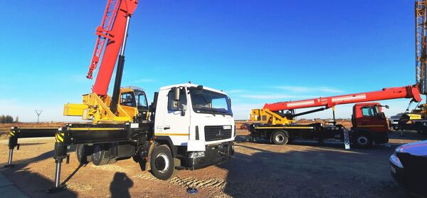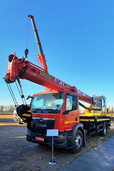 Еще на стенде МЧП «Модус» гости выставки «Автодорэкспо-2021» могли увидеть наиболее востребованную модель автокрана Palfinger Sany в Украине — с грузоподъемностью 32 тонны. Крановая установка установлена на грузовом шасси МАЗ-6302.