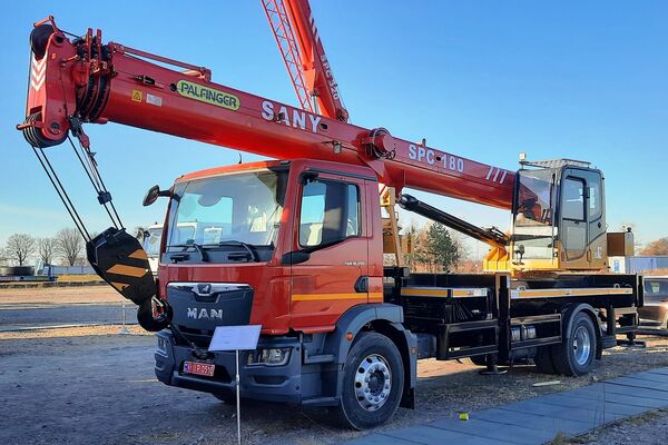 Как сообщалось ранее, в Украину ввезены новые модели автокранов Palfinger Sany SPC — специально по инициативе МЧП «Модус» для нашего рынка бренд Palfinger Sany разработал новую модель крановой установки — SPC 180 T с грузоподъемностью 18 тонн. Именно эта модель стала премьерой на форуме дорожного строительства Автодорэкспо.