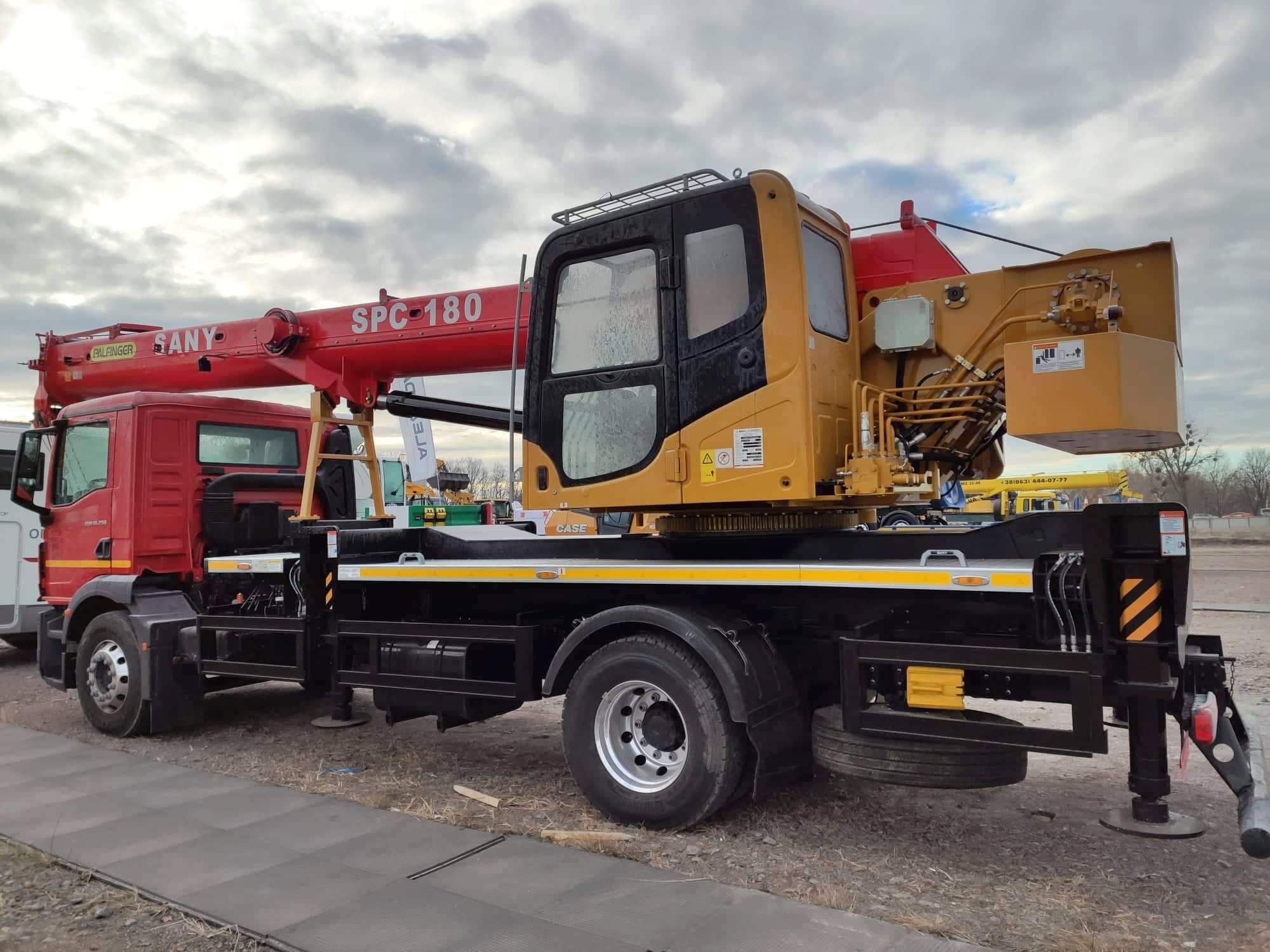 Как сообщалось ранее, в Украину ввезены новые модели автокранов Palfinger Sany SPC — специально по инициативе МЧП «Модус» для нашего рынка бренд Palfinger Sany разработал новую модель крановой установки — SPC 180 T с грузоподъемностью 18 тонн. Именно эта модель стала премьерой на форуме дорожного строительства Автодорэкспо.