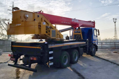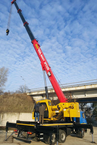 32-тонный автокран Palfinger Sany на базе белорусского шасси МАЗ отгружен в Украине для морской и речной отраслей.