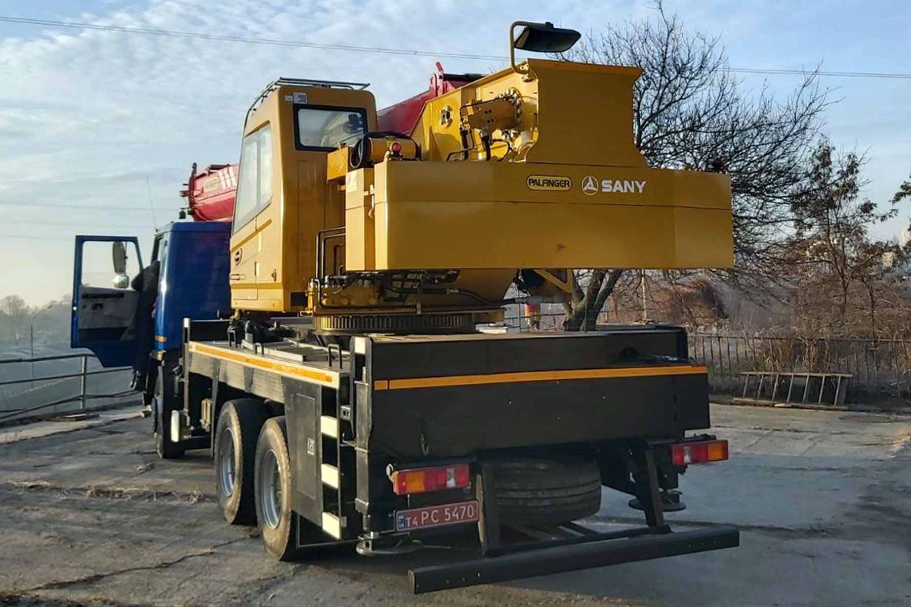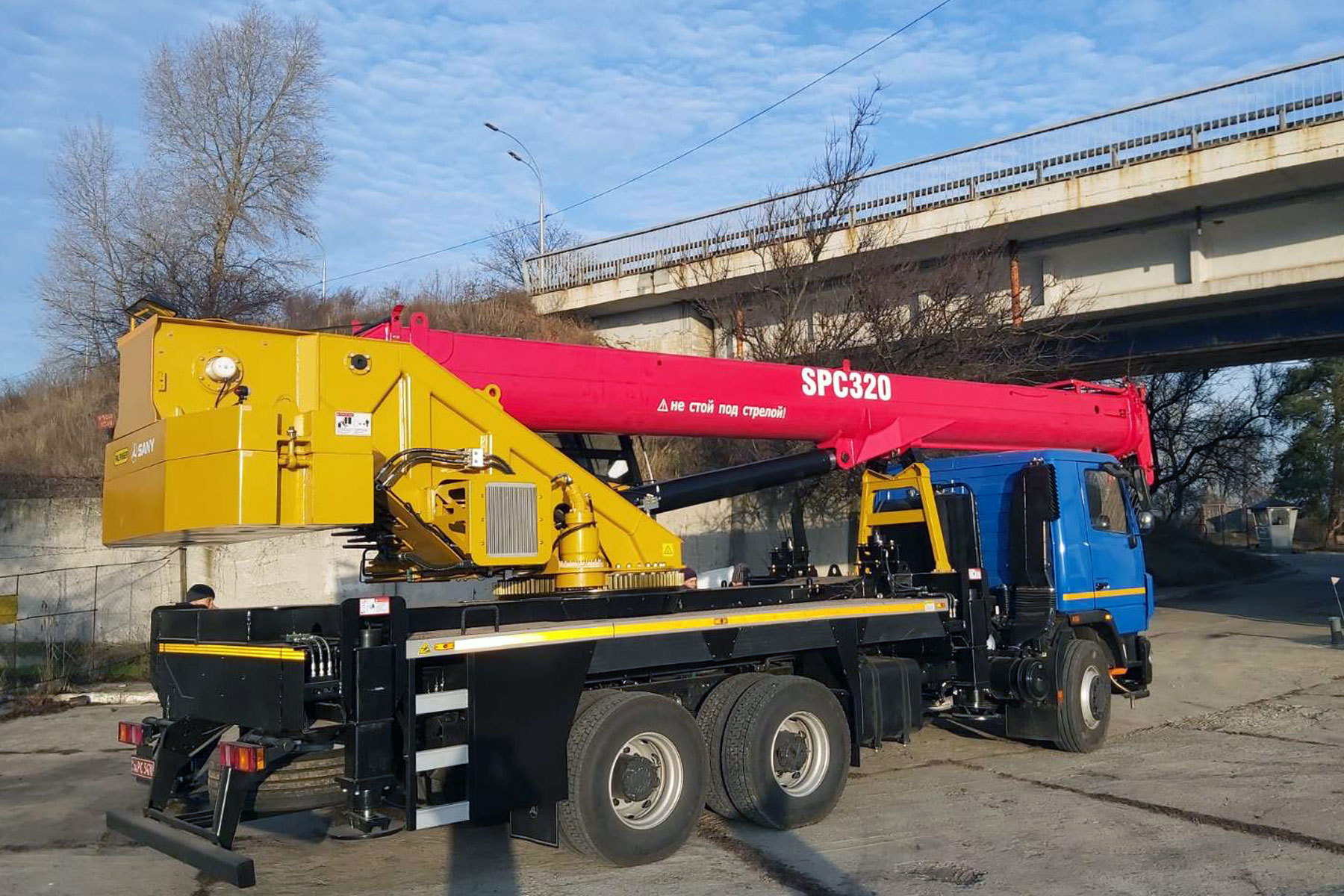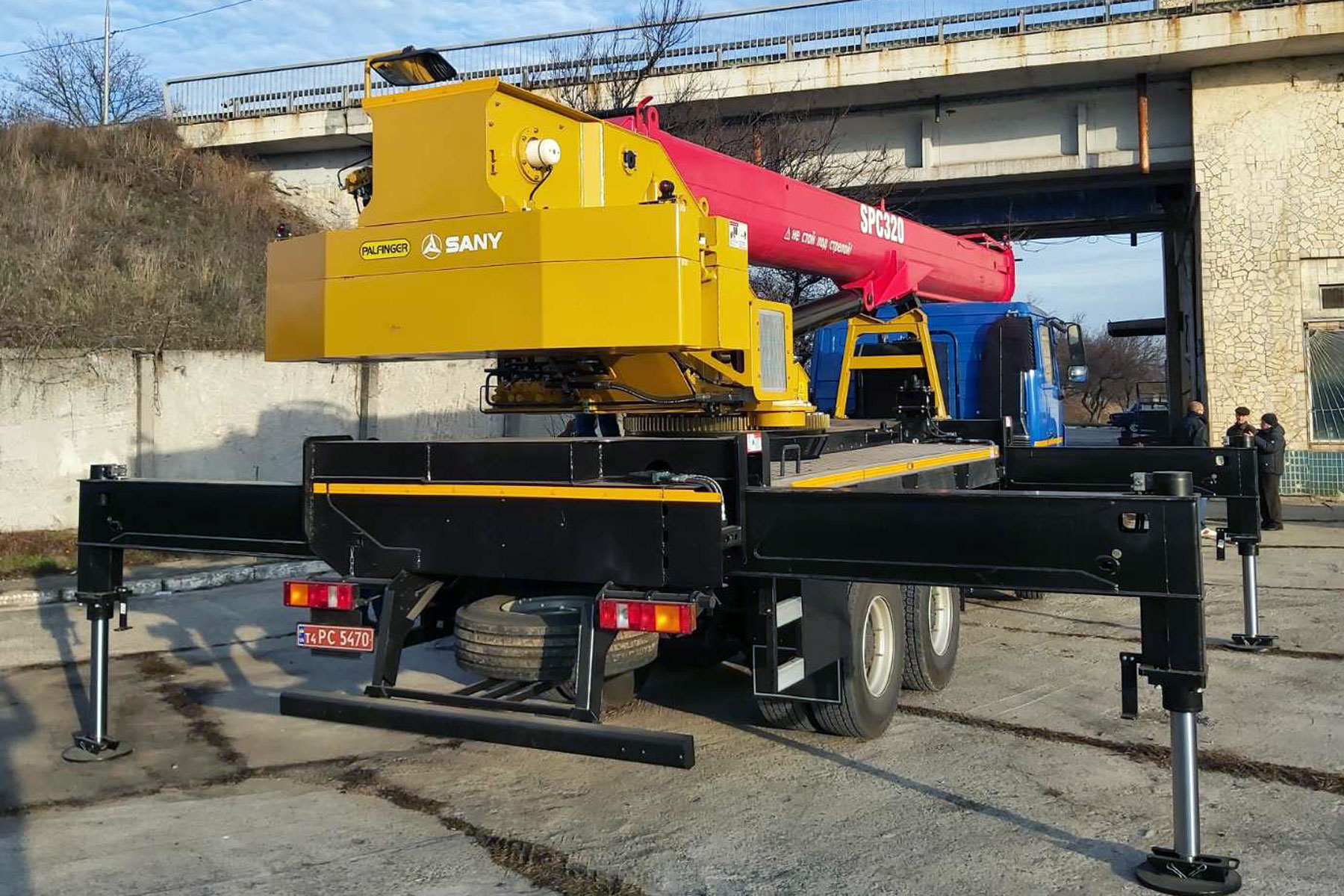 32-тонный автокран Palfinger Sany на базе белорусского шасси МАЗ отгружен в Украине для морской и речной отраслей.