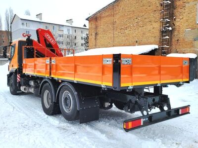 Бортовые платформы дополнены итальянской крано-манипуляторной установкой Fassi F215A.0.23, чьи технические параметры можно узнать по ссылке. Кран-манипулятор кран с большим запасом по грузоподъемности и вылету стрелы установлен позади кабины грузовика.