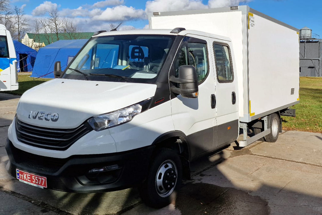 Украинский машиностроительный завод МОДУС наладил локальное производство промтоварных фургонов. Уже передали заказчику готовый промтоварный фургон на базе среднетоннажного грузового шасси IVECO Daily с 7-местной двухрядной кабиной.