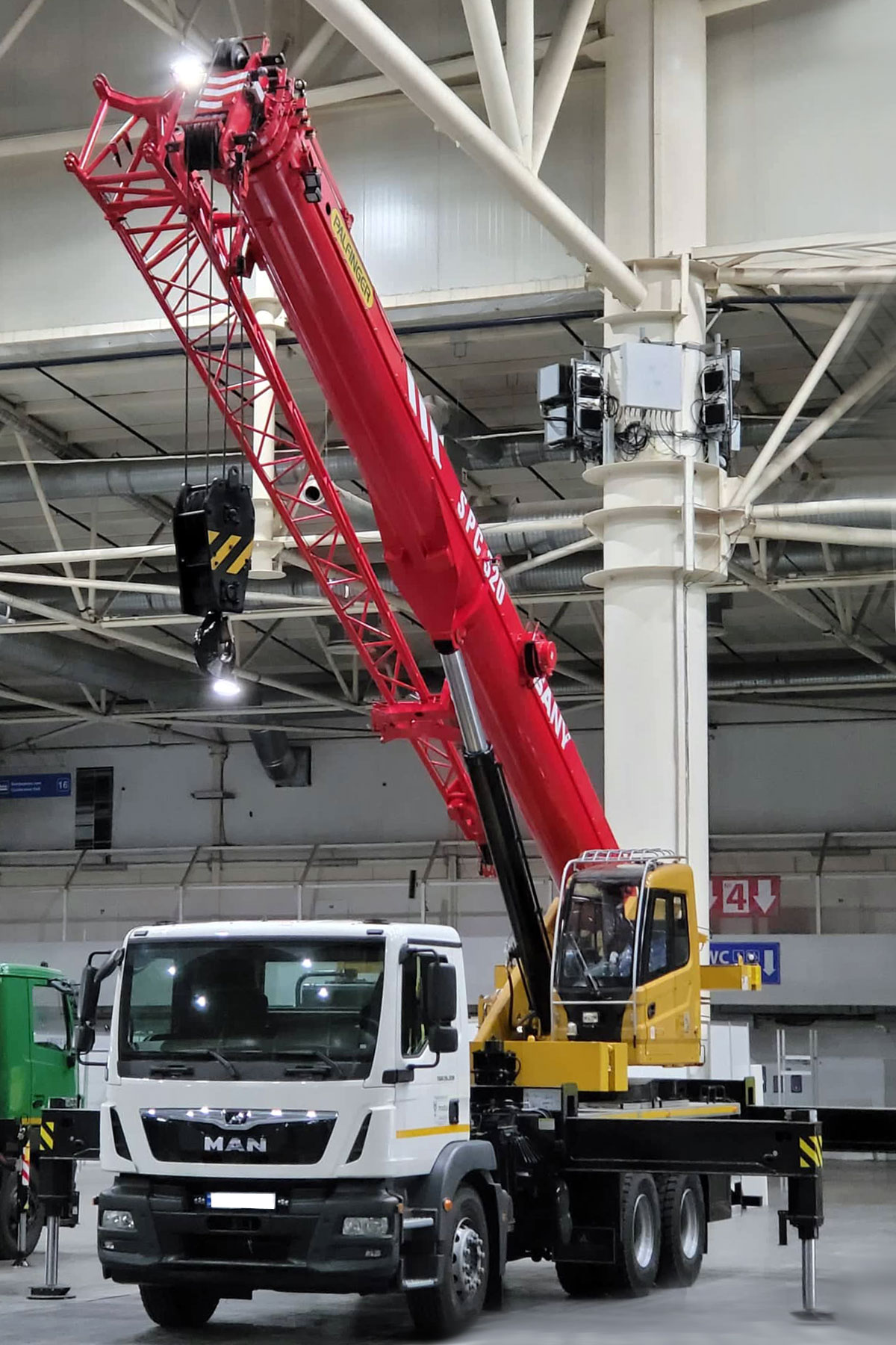Кстати, именно эту модель автокрана на таком же шасси показали на выставке Коммунтех-2020.