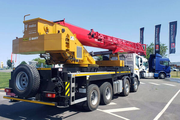 В настоящее время украинская энергетика требует от спецтехники современные и мощные образцы подъемных механизмов. Поэтому машиностроительный завод «Модус» уже в который раз выполнил заказ на изготовление нового мощного 50-тонного автокрана Palfinger Sany SPC 500. Из нового в этом проекте — впервые в качестве базового было использовано 4-осное грузовое шасси Volvo 8×4.