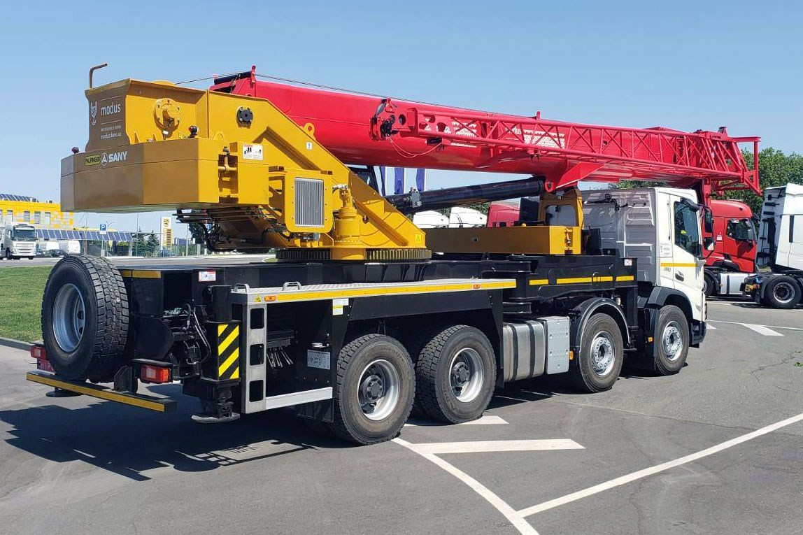 В настоящее время украинская энергетика требует от спецтехники современные и мощные образцы подъемных механизмов. Поэтому машиностроительный завод «Модус» уже в который раз выполнил заказ на изготовление нового мощного 50-тонного автокрана Palfinger Sany SPC 500. Из нового в этом проекте — впервые в качестве базового было использовано 4-осное грузовое шасси Volvo 8×4.