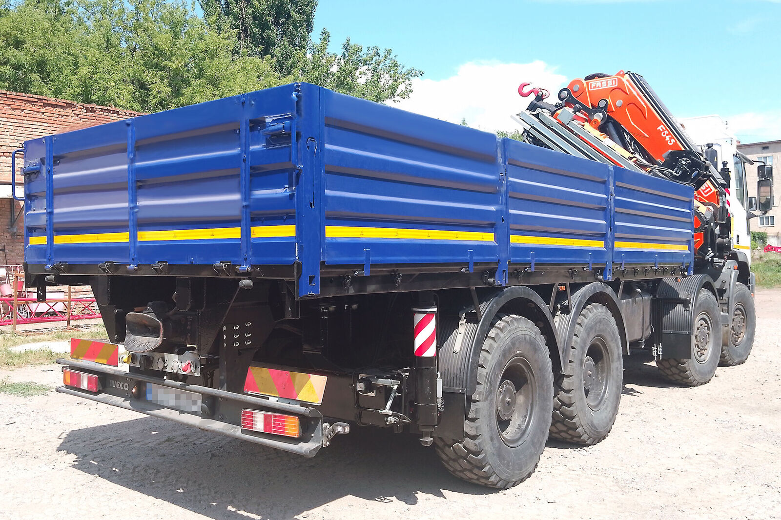 Установлен кран-манипулятор FASSI из HEAVY DUTY серии на давальческий бортовой автомобиль IVECO