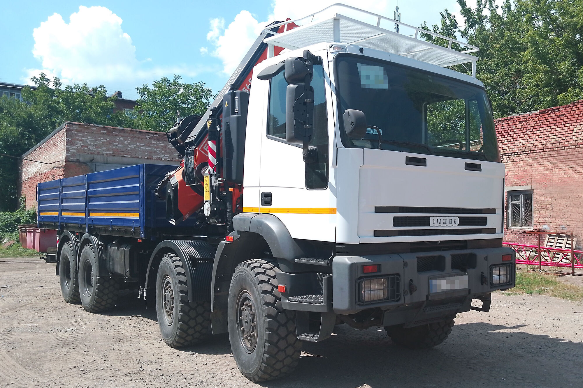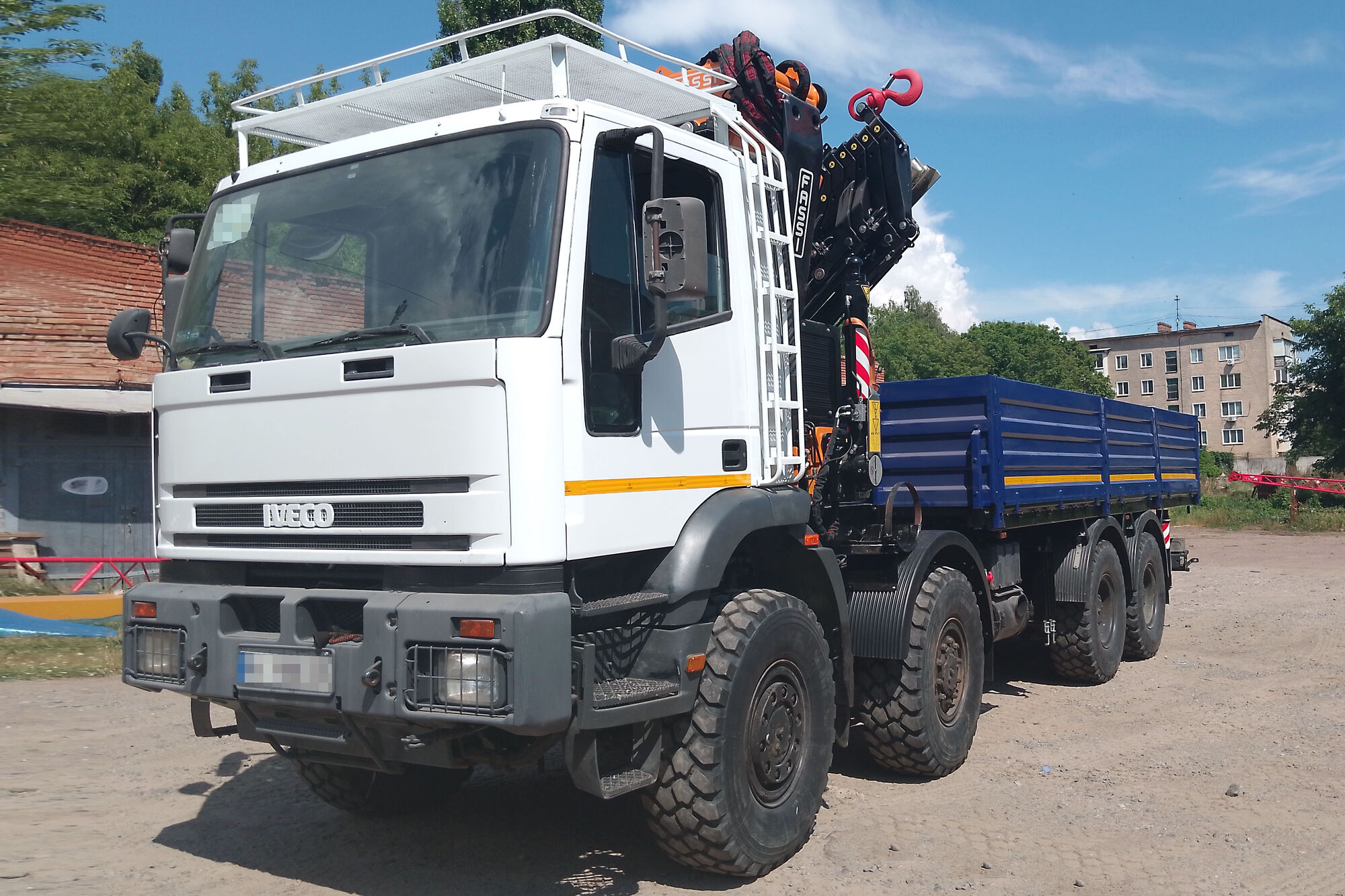 Установлен кран-манипулятор FASSI из HEAVY DUTY серии на давальческий бортовой автомобиль IVECO