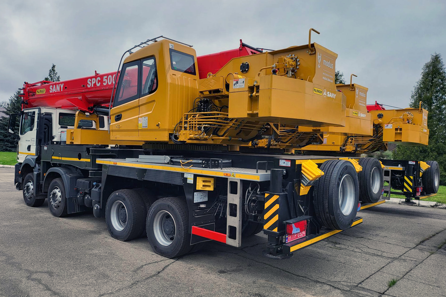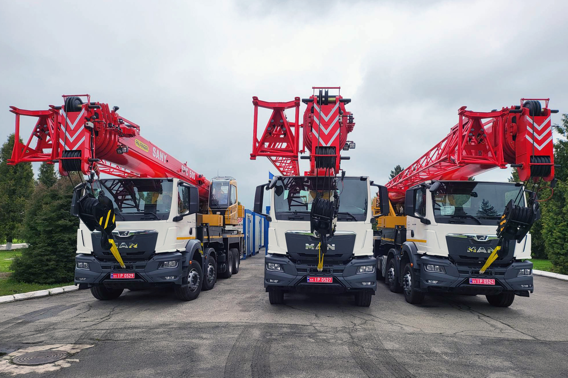 Итак, завершены производство и отгрузка крупной партии 50-тонных автомобильных кранов Palfinger Sany SPC500 на базе грузовых шасси MAN TGS 8×4 с уникально низкой кабиной. Как сообщали ранее, этими кранами будет пользоваться предприятие критической инфраструктуры Украины.