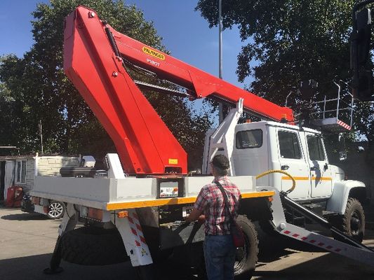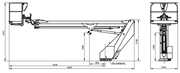 - Поворотный круг. Опора поворотного круга, стреловая система, алюминиевая корзина на два человека, платформа с 4 гидравлическими аутригерами