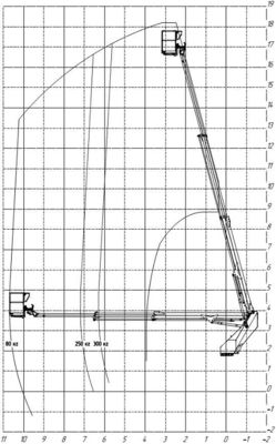 Модификация | Максимальная рабочая высота | Максимальный горизонтальный вылет | Г/п люльки | Вес надстройки | Размер люльки Д×Ш×В | Угол поворота люльки | Угол поворота турели | Количество секций стрелы | Стоимость |