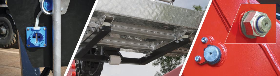 Для перевозки гидрооборудования с внутренними компонентами*. Находится с правого бока шасси (* аварийный насос, панель управления аутригерами, нижний пульт управления) |