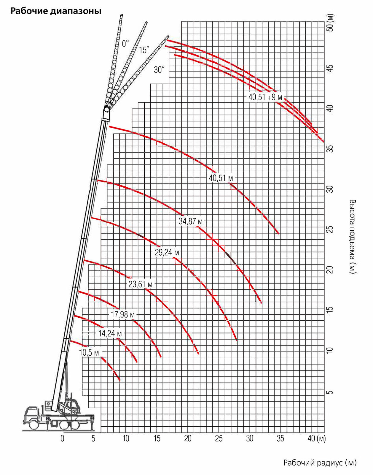 | Длина стрелы Базовая стрела Полностью выдвинутая стрела Полностью выдвинутая стрела + гусек |