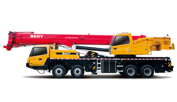 Автомобильный кран Palfinger Sany STC 600T5 имеет 5 секций стрелы, г/п 60 т. Грузовой момент 215 тм, стрела 11,74–45,5 м, гусек 16 м, максимальный подъем и вылет 62 м и 38 м соответственно. Крановая установка смонтирована на спецшасси.