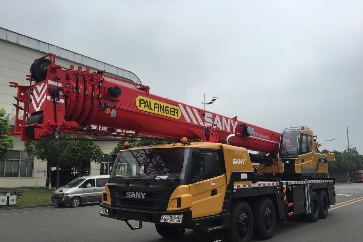 Автомобильный кран Palfinger Sany STC 800 имеет 5 секций стрелы, г/п 80 т. Грузовой момент 297 тм, стрела 12,2–47 м, гусек 16,5 м, максимальный подъем и вылет 62 м и 32 м соответственно. Крановая установка смонтирована на спецшасси.