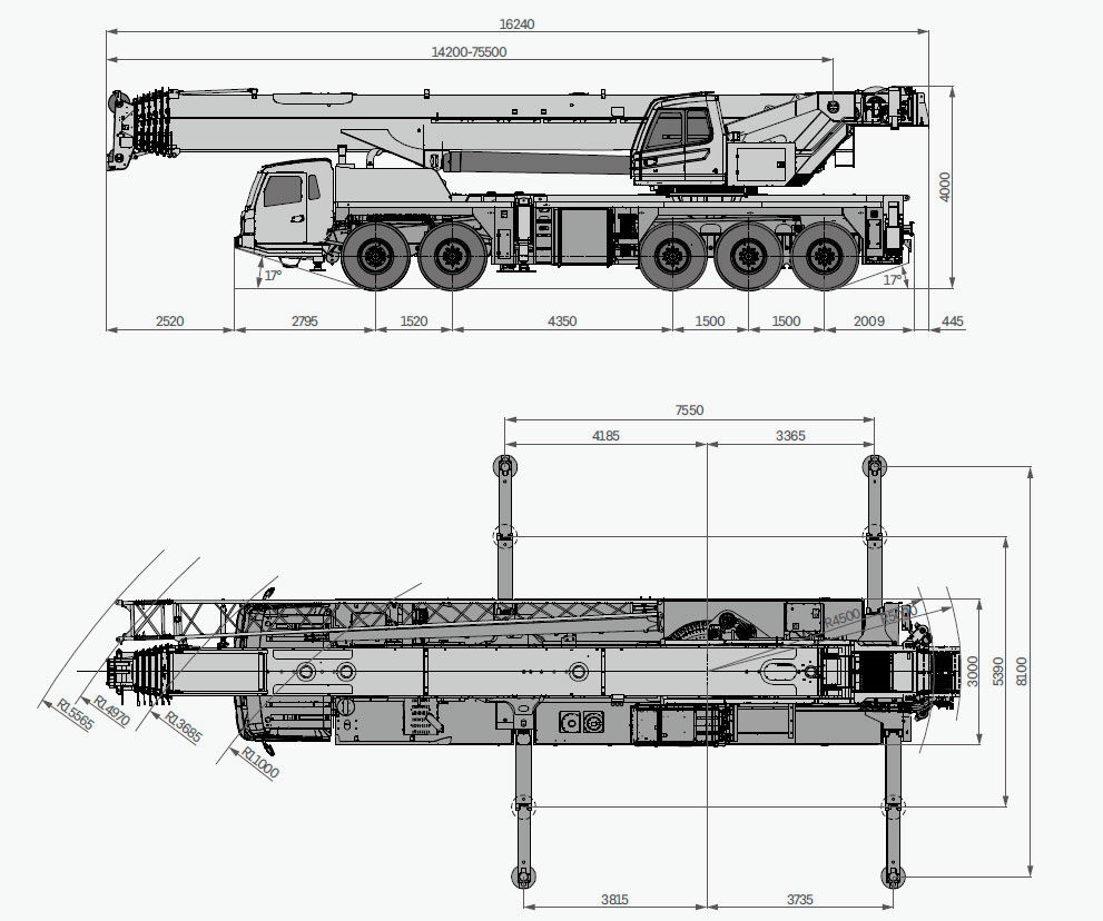 Характеристики модификаций на автокран Palfinger Sany STC1600T7