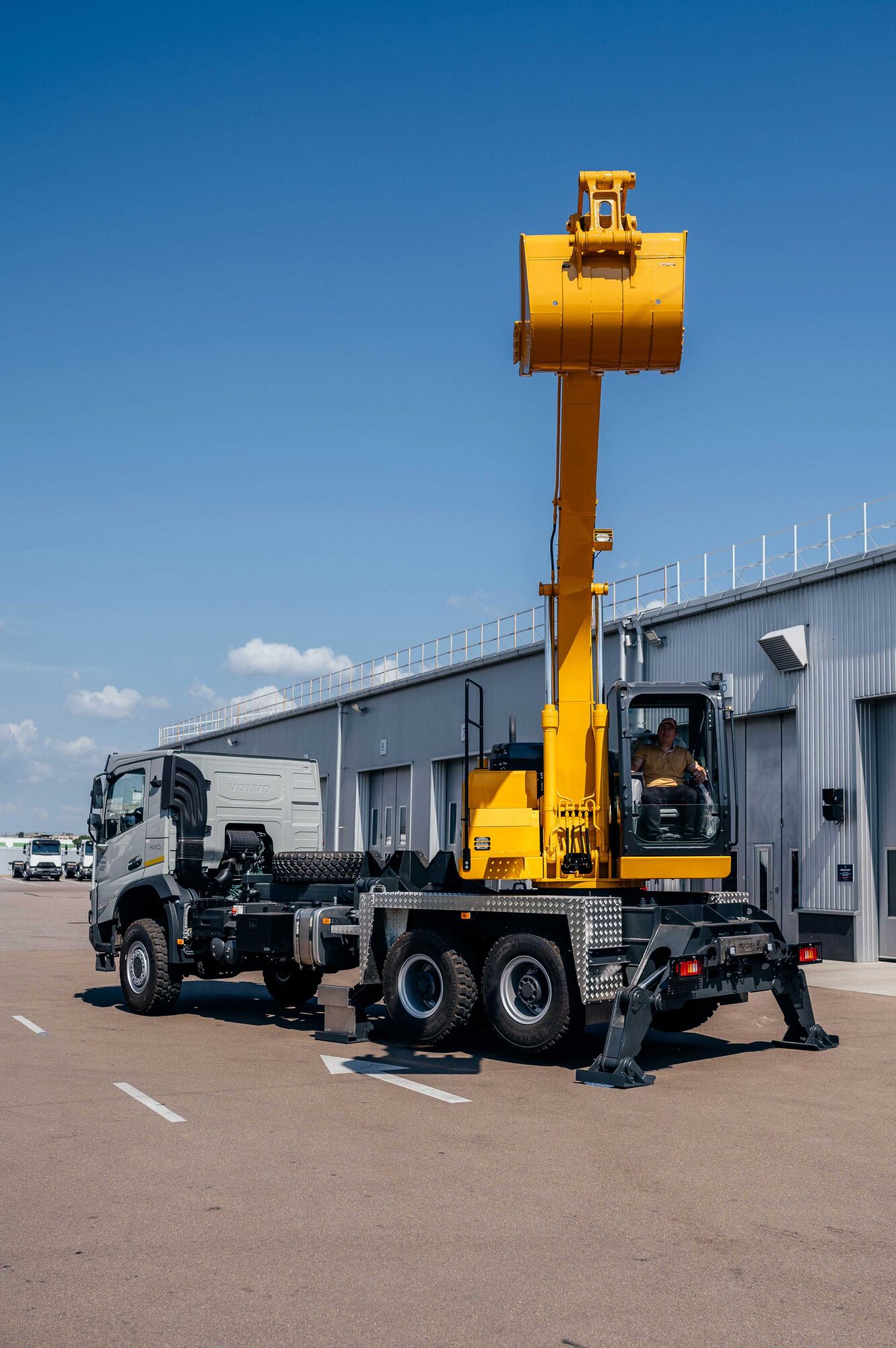 Шасси базового автомобиля VOLVO FMX 6×6 обеспечивает высокую проходимость благодаря одним из лучших углов съезда и заднему свесу и клиренсу в своем классе в сочетании с низкой кабиной, что позволяет выполнять требования законодательства к максимальной высоте транспортных средств. Уникальная система блокировок межосевых и межколесных дифференциалов позволяет использовать автомобиль в конфигурации от 6×4 или 6×6 в зависимости от условий эксплуатации и задач.