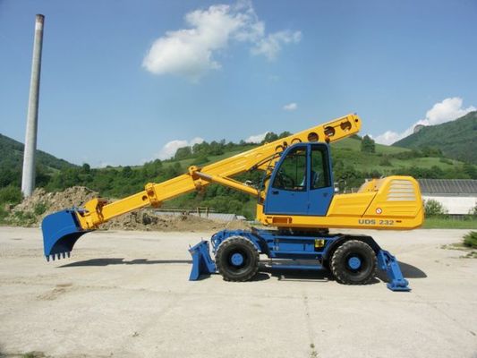 Экскаватор-планировщик UDS 232 на колесном ходу, который обладает идеальной мобильностью как на шоссе, так и по бездорожью. Машина UDS 232 предназначена для точных ландшафтных работ, в местах контакта строений с околицей. Большой выбор специального дополнительного оборудования дает возможность самого разного применения. Экскаватор-планировщик UDS 232 на колесном ходу надежно работает в лесном хозяйстве, также как и в горнодобывающей, или же в нефтедобывающей промышленности.