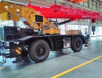 Короткобазный кран Palfinger Sany SRC 250C, имеет 4 секции, г/п 25 т. Грузовой момент 96,8 тм, длина стрелы 9,9–31,5 м, гусек 7,9–13,7 м. Самоходное шасси 4×4.