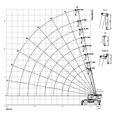 Модель | Грузовой момент | Мин. вылет стрелы | Макс. вылет стрелы | Грузоподъемность на мин. вылете стрелы | Грузоподъемность на макс. вылете стрелы | Максимальная высота подъема | Количество секций | Стоимость |