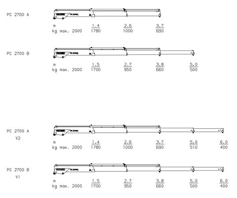 Характеристики модификаций на кран-манипулятор Palfinger PC 2700 Compact