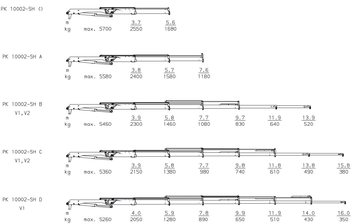 PK 10002 SH C V1, V2 | 8,5 тм | 15,8 м | 5360 кг | 380 кг | 400 º | 1370 кг | Узнать цену |