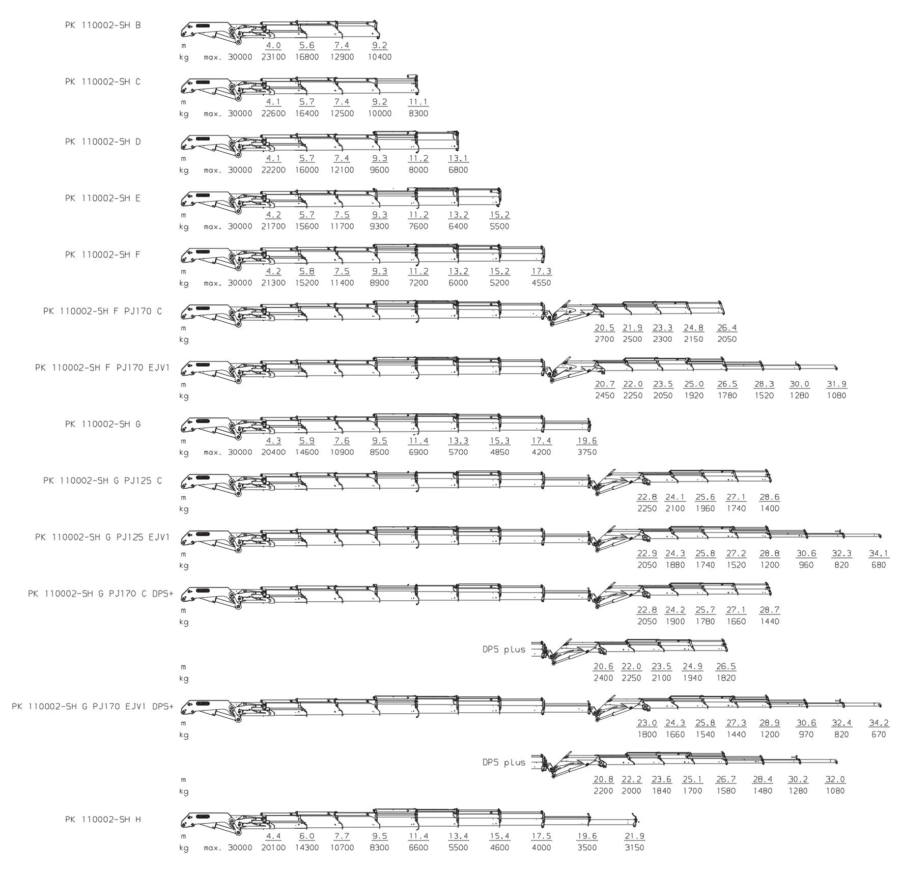 Характеристики модификаций на кран-манипулятор Palfinger PK 110002 SH High Performance