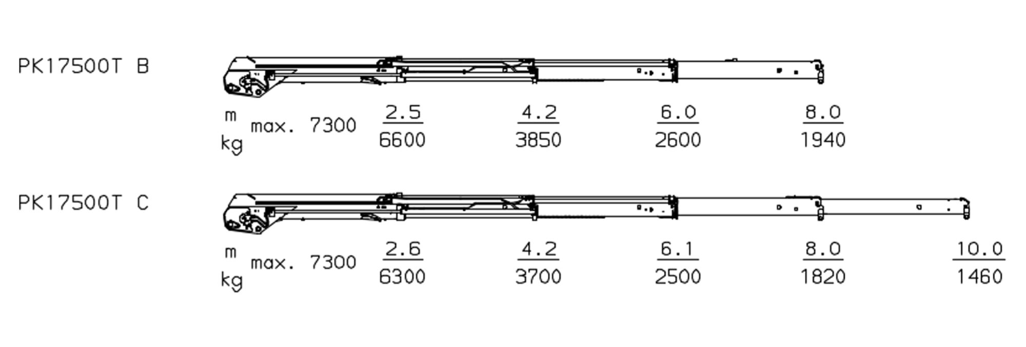 PK 17500T C | 14,5 тм | 10,0 м | 7300 кг | 1460 кг | 420 º | 1680 кг | Узнать цену |