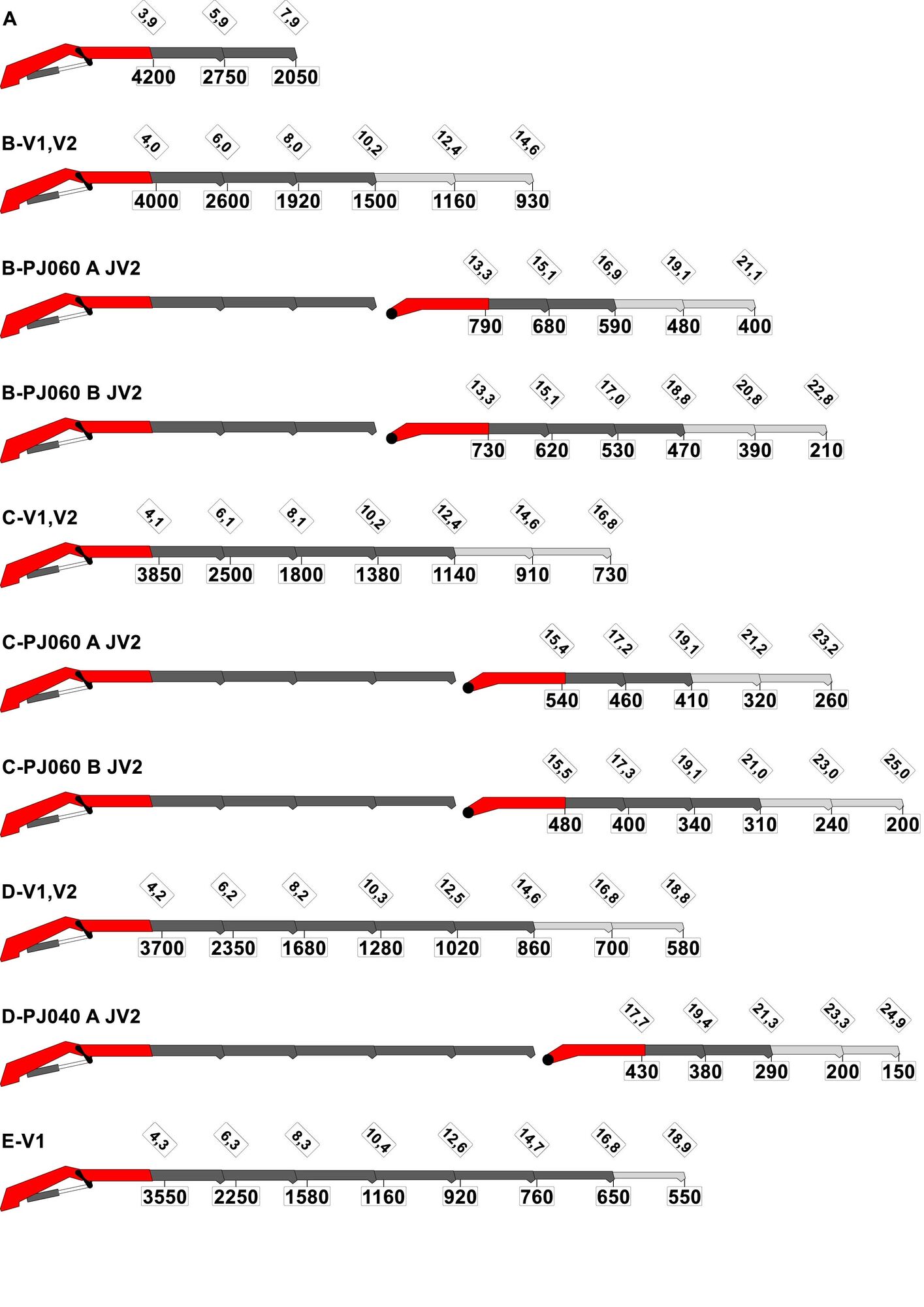 Указанные вылеты указаны для угла наклона стрелы 20° и, следовательно, не являются максимальными. При использовании механических удлинителей стрелы указанные в таблицах нагрузки необходимо уменьшить на вес этих удлинителей.