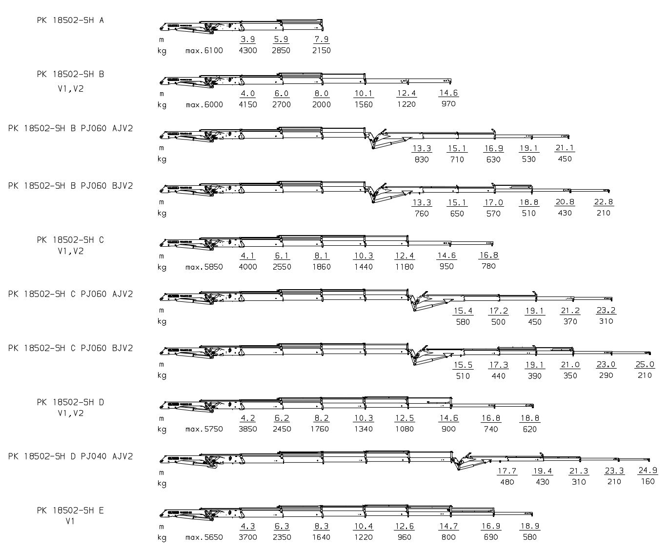 PK 18502 SH B V1, V2 | 16,7 тм | 14,6 м | 6000 кг | 970 кг | 420 º | 2030 кг | Узнать цену |