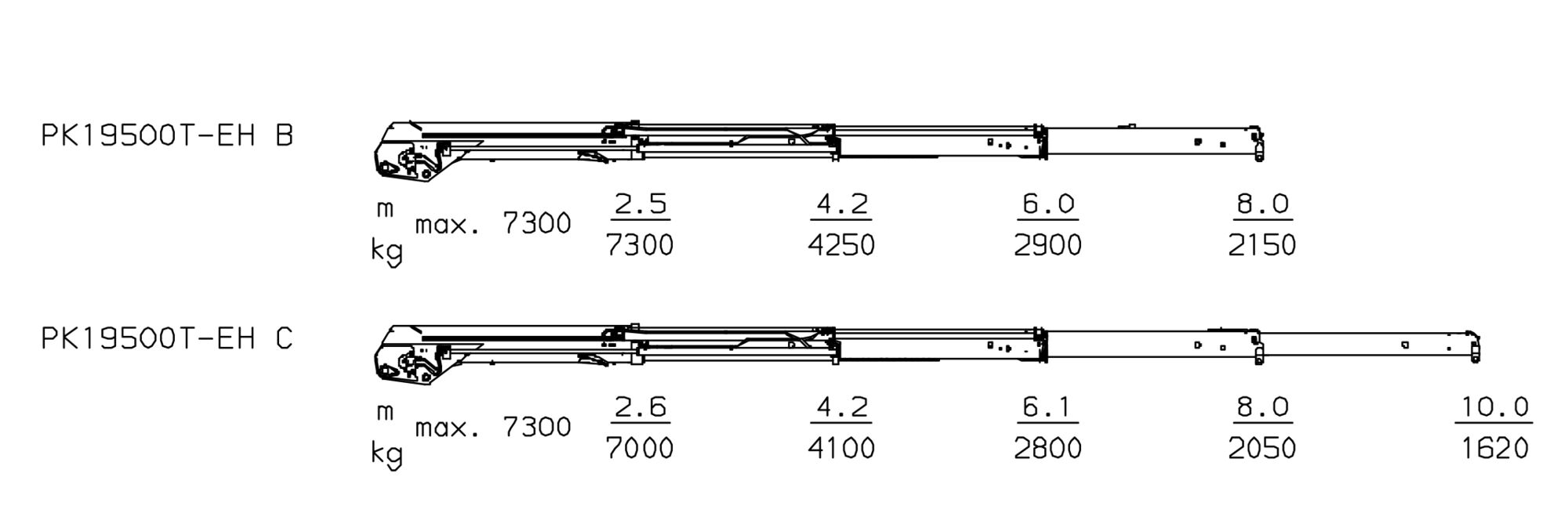 PK 19500T-EH B | 17,2 тм | 8,0 м | 7300 кг | 2150 кг | 420 º | 1576 кг | Узнать цену |