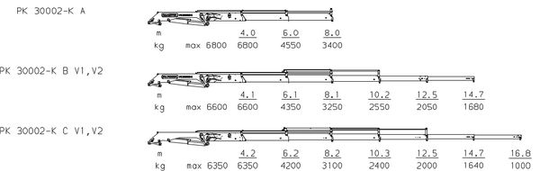PK 30002-K C V1, V2 | 26,5 тм | 16,8 м | 6350 кг | 1000 кг | 400 º | 3099 кг | Узнать цену |