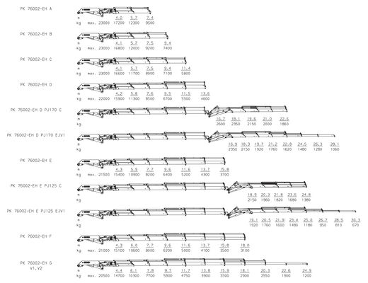Характеристики модификаций на кран-манипулятор Palfinger PK 76002 EH High Performance