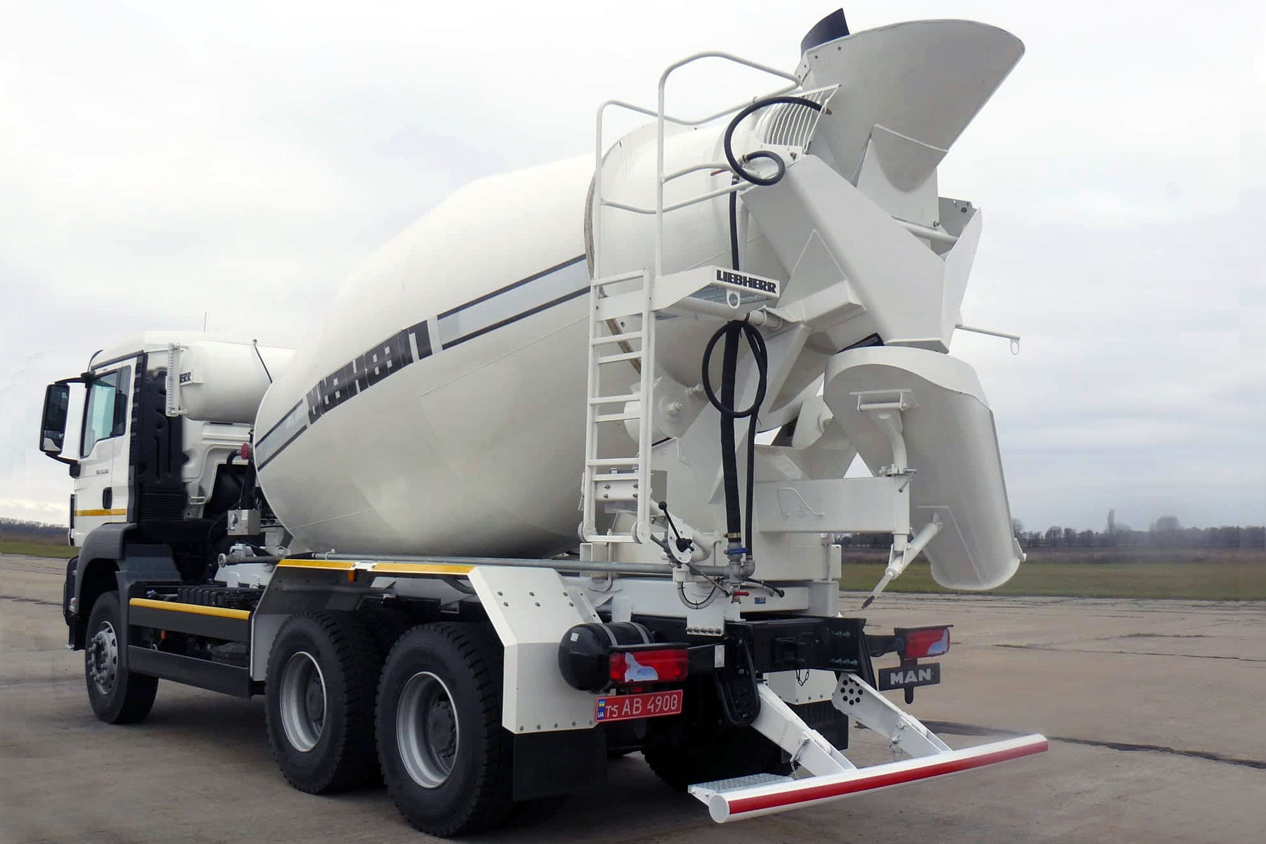** - Измеряется в соответствии с DIN 459-1 при мин. двух оборотах барабана в минуту. Указанные значения объема соответствуют только при горизонтально ровной раме смесителя. Здесь не учитывается прогиб рамы смесителя во время загрузки и он может при определенных обстоятельствах неблагоприятно влиять на объем, измеряемый наполнением водой. Реальная заполняемость смесителя бетоном зависит от его консистенции и реологических свойств. Топология проезжей части, а также качество езды влияют на максимальный объем загрузки.